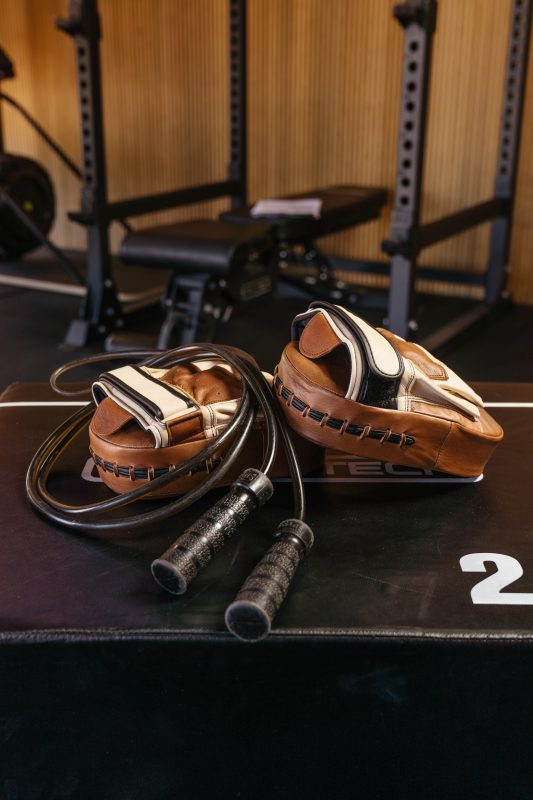Gym skipping rope and boxing pads